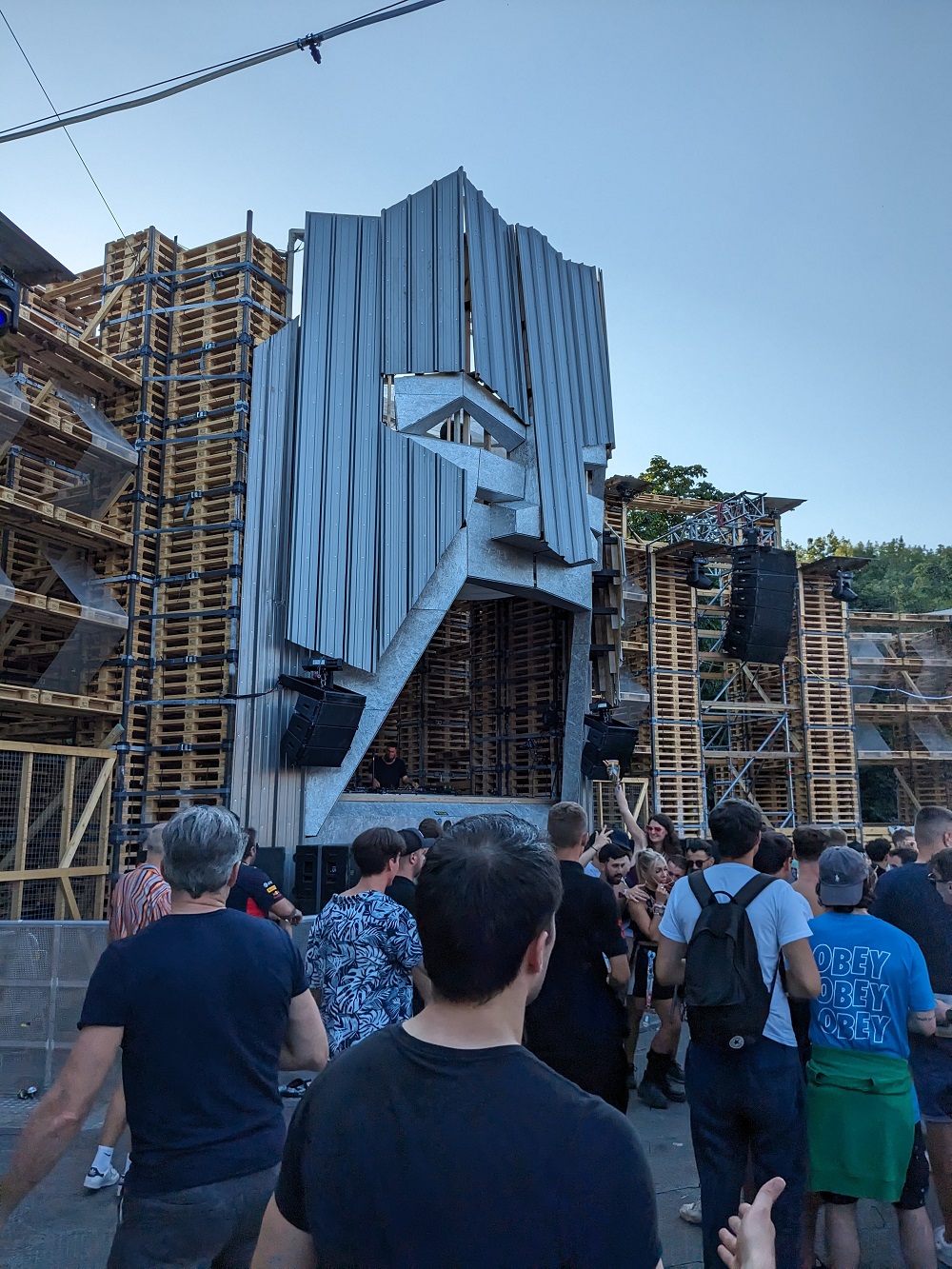 El is indultunk megkeresni, majd kilyukadtunk a Colosseum-nál, ami messze az egész fesztivál legjobb “sátra” volt. Konkrétan raklapokból építettek újra a Colosseumot, a DJ booth pedig egy hatalmas gladiátor sisak volt. A pultban pedig egy addig számomra teljesen ismeretlen DJ, aki valami elmebeteg módon és teljesen fáradhatatlanul verette a hard techno-t.