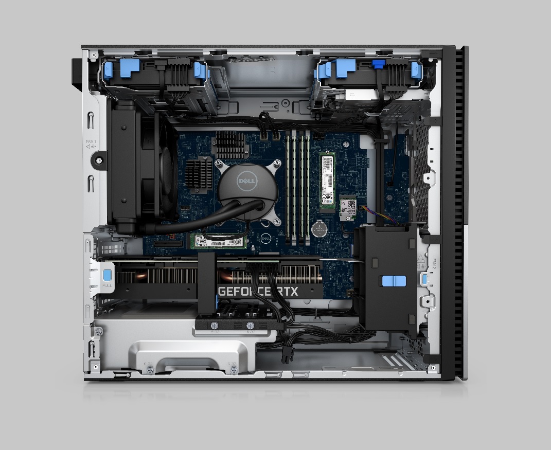 A mérnökök átdolgozták az eszköz hőelvezetését, hogy maximalizálják a teljesítményt és csökkentsék a fokozott levegőáramlásnak köszönhető zajokat. A vázat úgy tervezték, hogy a hideg levegő a borítás elején áramlik be és hátul távozik. Az új XPS asztali számítógép terhelés alatt akár 21 százalékkal kevesebb hőt termel (125 W-os hűtési megoldás mellett), folyadékhűtéssel pedig akár 18 százalékkal lesz hűvösebb (az új, 125 W-os hőelvezetési megoldáshoz viszonyítva).4 Az új, akár percenként 5000 fordulatszámú ventilátorok alacsonyabb fordulatszám mellett is hatékonyabban működnek, aminek köszönhetően a rendszer halkabban üzemeltethető. Összességében nézve az új asztali számítógép nagy terhelés mellett is legalább 50 százalékkal csendesebb a korábbi változatoknál5.