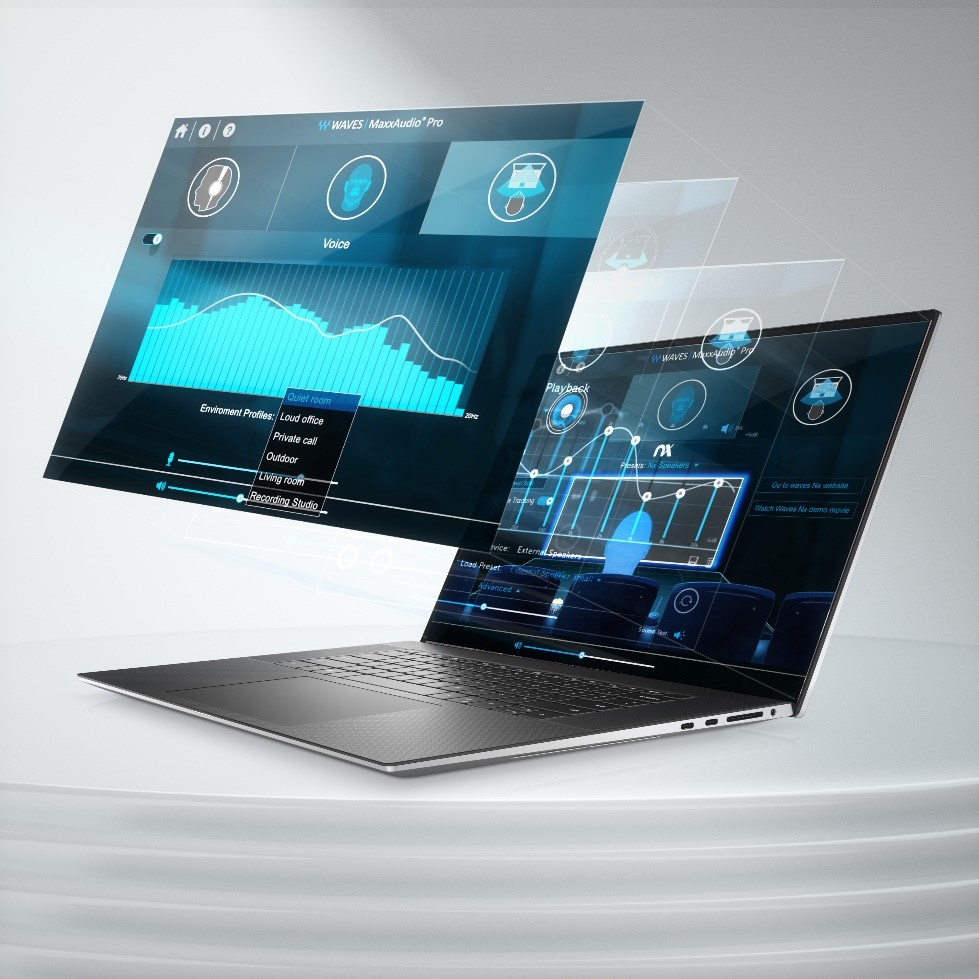 - Térhatású 3D hangzás: Az XPS 15 és 17 a legelső olyan laptopok7, amelyek a Waves Nx® 3D hangrendszert használják, a finomhangolásukért a többszörös Grammy-díjas Jack Joseph Puig felelt. Fülhallgató viselésekor a Waves Nx® követi a fej mozgását, és a megjelenített képhez viszonyítva módosítja a hangok irányát. A hangszórók használatakor az Nx® fejkövetéssel garantál mozis minőségű hangzást.