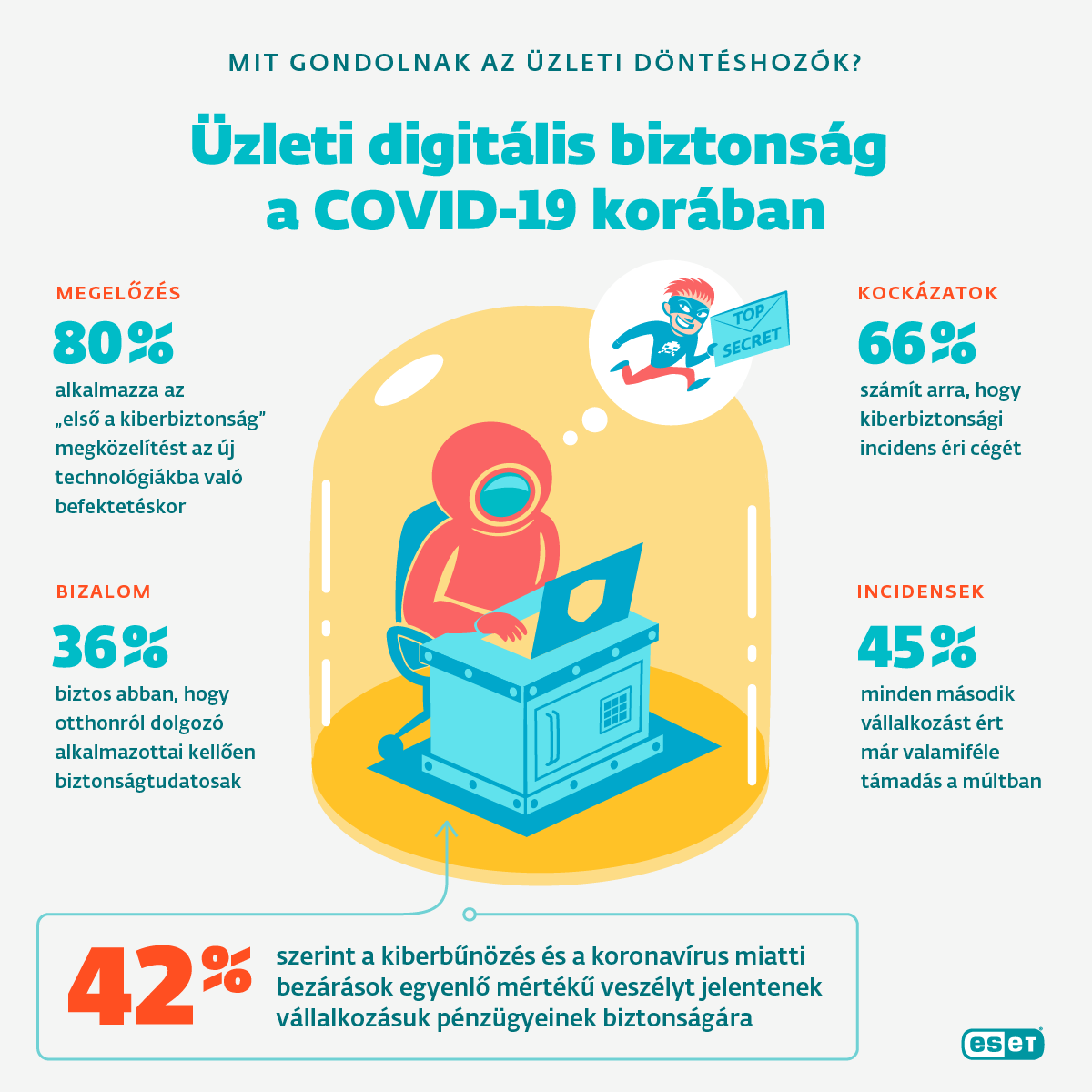 Az ESET globális FinTech-kutatásának üzleti szegmensében vizsgálta a felsővezetők hozzáállását a pénzügyi technológiához (FinTech) és a biztonsághoz: a felmérésben 1200 felsővezető vett részt az Egyesült Királyság, az Egyesült Államok, Japán és Mexikó különböző iparágaiból. A felmérésből kiderült, hogy az üzleti vezetők több mint kétharmada (68%) tervezi növelni a pénzügyi technológiába, azaz a FinTech-be történő befektetéseit a 2021-2022-es időszakban. A megkérdezett senior vezetők 81% százaléka egyetért abban, hogy a koronavírus megnövelte a pénzügyi biztonság fejlesztésének szükségességét. Ehhez azonban a munkavállalók tudatosságára, biztonsági képzésére is szükség volna.