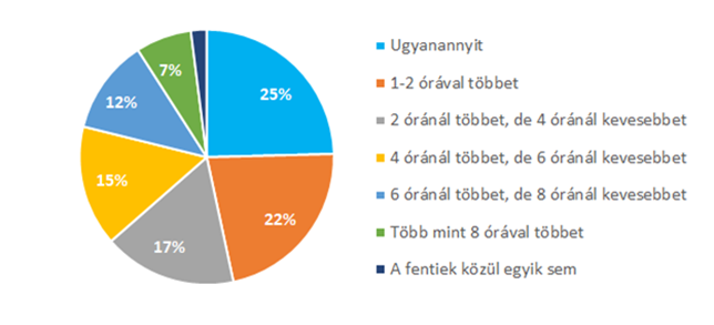Naponta átlagosan mennyivel többet használja Ön otthon az internetet amióta otthoni munkára/ otthoni tanulásra kényszerült az ország?