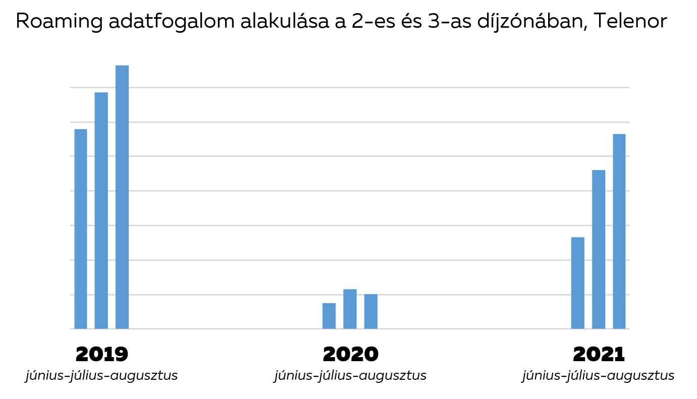 A 2-es és 3-as díjzónában mért adatforgalmi adatok alapján a koronavírussal kapcsolatos utazási korlátozások nagy vesztesei a távoli országok. 2019-ről 2020-ra nagyságrendileg 80%kal esett ebben a díjzónában a Telenor hálózatán mért roaming-forgalom. 2021-ben, a nyárra lazuló utazási korlátozások az előző évnél lényegesen több embert sarkalltak távoli országba szóló vagy egzotikus utazásra – a 2-es és 3-as díjzónában májustól jól látható emelkedésbe kezdett a mobilnet-forgalom, augusztusra elérte a koronavírus előtti nyár forgalmának kétharmadát.