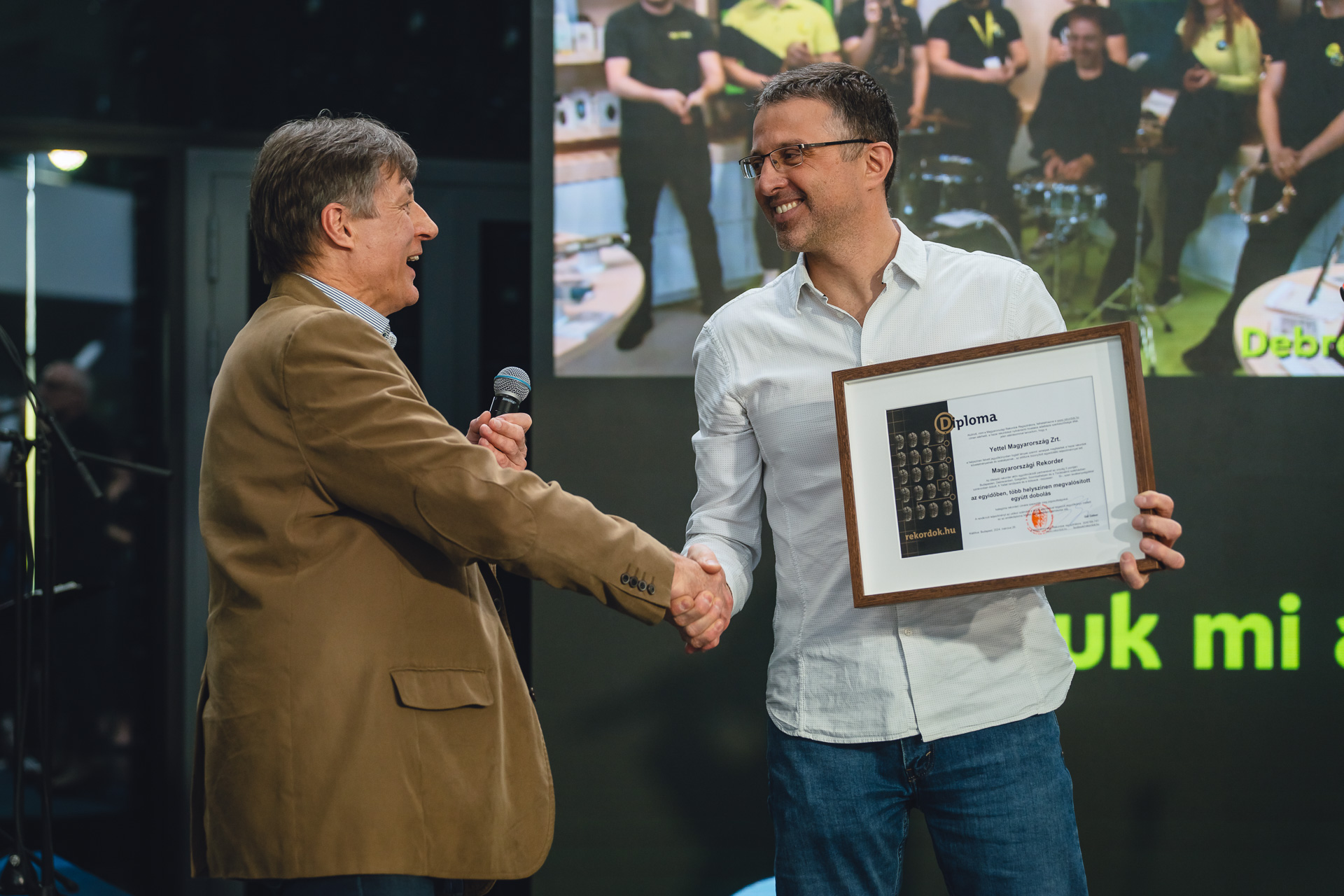 A rekord létrejöttét Abaházi Csaba műsorvezetőként segítette. „A zene mindig is központi szerepet játszott az életemben, aminek az alapja az ütem, a tempó, így maga a dob is. Hasonlóan ahhoz, ahogy rádiózáskor összekötjük és egyszerre érjük el az ország különböző pontjait, itt is ez történt: nem csak közösen zenéltünk, hanem pár percig egy összetartó ütemre hangolódott Budapest, Törökbálint, Szeged, Debrecen és Szombathely és létrehoztunk egy országos rekordot. Ezért éreztem nagyon testhezálló feladatnak, hogy én legyek a műsorvezetője ennek a nem mindennapi eseménynek, ráadásul itt az összefogás, a buzdítás, az ösztönzés mellett én is részt vehettem az ütem diktálásában” – mondta el a műsorvezető.