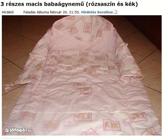 A babának valahol aludnia kell, nem lehet folyton a szülei ágyában, mert az anyukának is jár a jól megérdemelt pihenés. Egy pelenkázó résszel, tároló polcokkal rendelkező rácsos babaágy már 15 000 forintért található az apróhirdetési oldalon. Háromrészes babaágyneműt 4 000 forintért is lehet vásárolni a portálon. Ugyanitt a fürdetéshez nélkülözhetetlen kiváló babakék babakád pedig már 2 000 forintért beszerezhető.