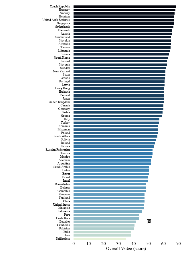 A vállalat által vizsgált 69 ország közül csupán 11 ország szerzett „nagyon jó” minősítést, a Magyarországi mobilhálózatok pedig kiemelkedően jól szerepeltek, mivel a második legjobbnak bizonyultak a világon, a maximális 100-ból 67,89 pontot érve el. A legjobb eredmény a Cseh Köztársaságé, 68,52 ponttal. Magyarország a jelenlegi pontszámmal megelőzte még a híresen fejlett norvég mobilhálózatokat is, melyek csupán a harmadik helyet szerezték meg 67,41 ponttal. A lista középmezőnyébe kerültek a német, román, lengyel, francia hálózatok, melyek a mobil videózás szempontjából hatvan pont alatt végeztek.