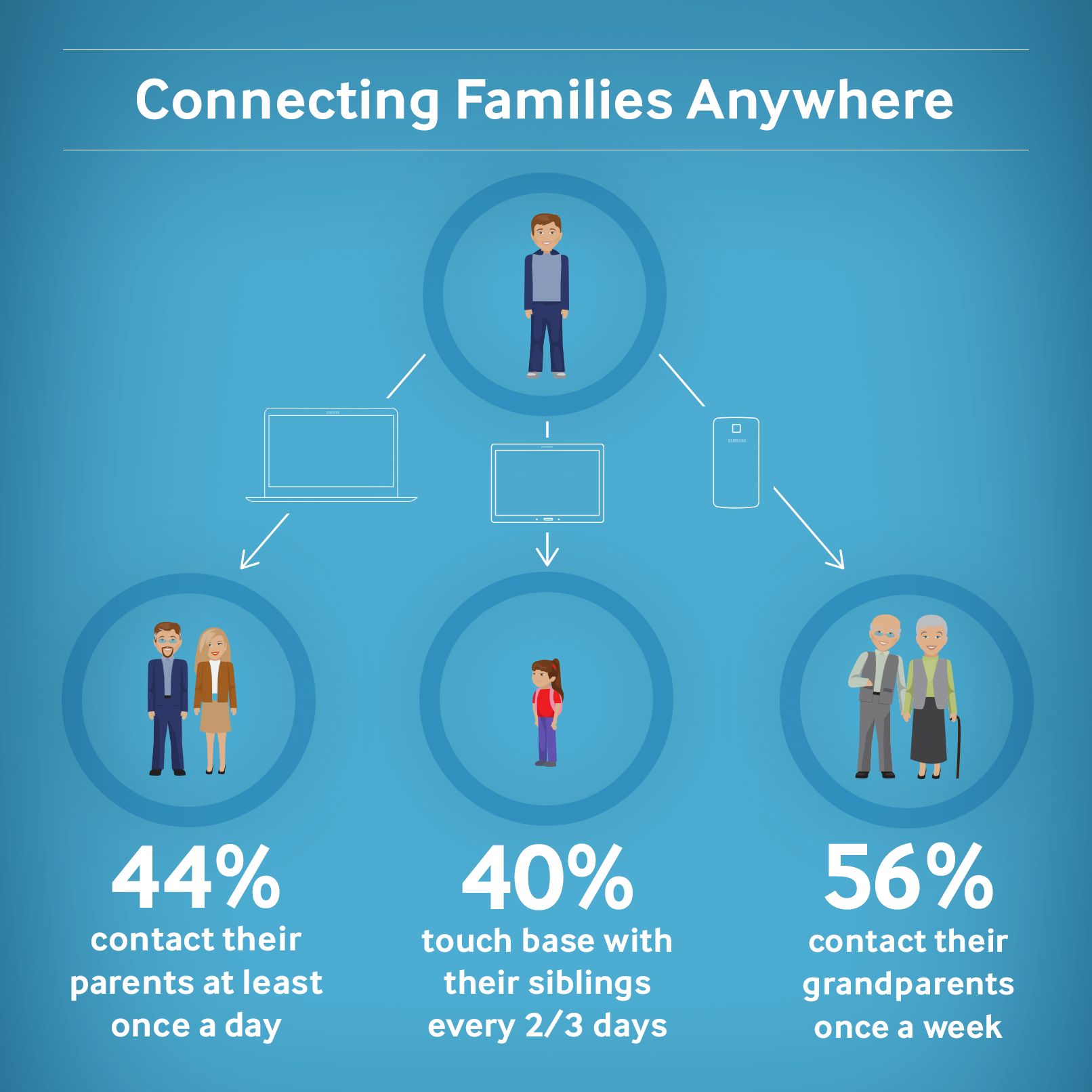 • A válaszadók több mint fele szerint a mobil technológiának (pl. mobiltelefon, táblagép stb.) köszönhetően sokkal többet beszél a közvetlen családjával, és ezáltal jobban meg is értik egymást.