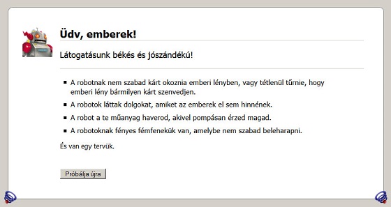 Van egy hátborzongató rejtett üzenetet a Firefox webböngészőben. Minden Mozilla böngésző tartalmaz néhány speciális funkciót, melyet az „about:” szöveg címsorba való beírásával érhetünk el. Ezek között helyet kapott egy hátborzongató, mégis vicces ablak. Az „about:robots” beírásával az alábbi figyelmeztető üzenet jelenik meg:
