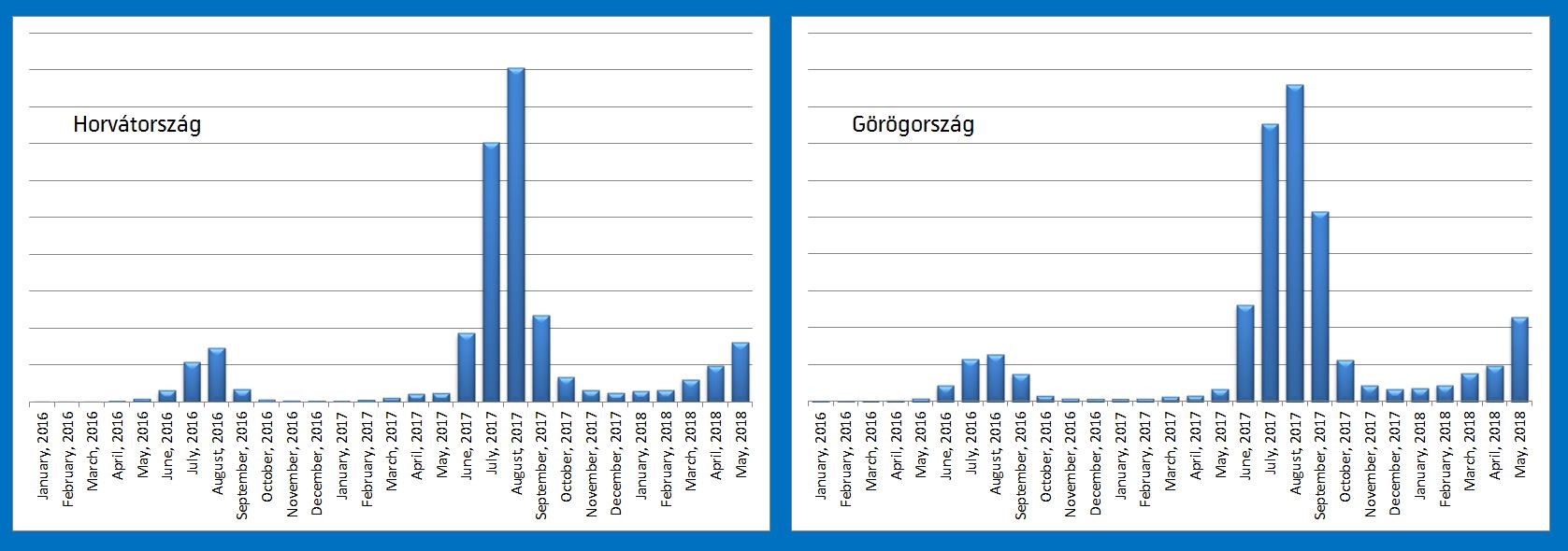 Érdekesség, hogy az elsősorban nyaralási célpontként számon tartott Horvátországban a téli adatforgalom egészen alacsony, míg a nyári szezonban az EU szabályozást követően hatalmasat ugrott a roaming adathasználat az egy évvel korábbihoz képest. Így Horvátország csupán a kiugró nyári forgalommal tudott a top 5 EU adatroaming-ország listájára kerülni. Forgalmazott adatmennyiségben Görögország ugyan elmarad Horvátországtól, de az adatforgalmi trend hasonlóan mutatja a szezonalitást. Ebben a két országban a Telenor-ügyfelek adatroaming-forgalma a következőképpen alakult: