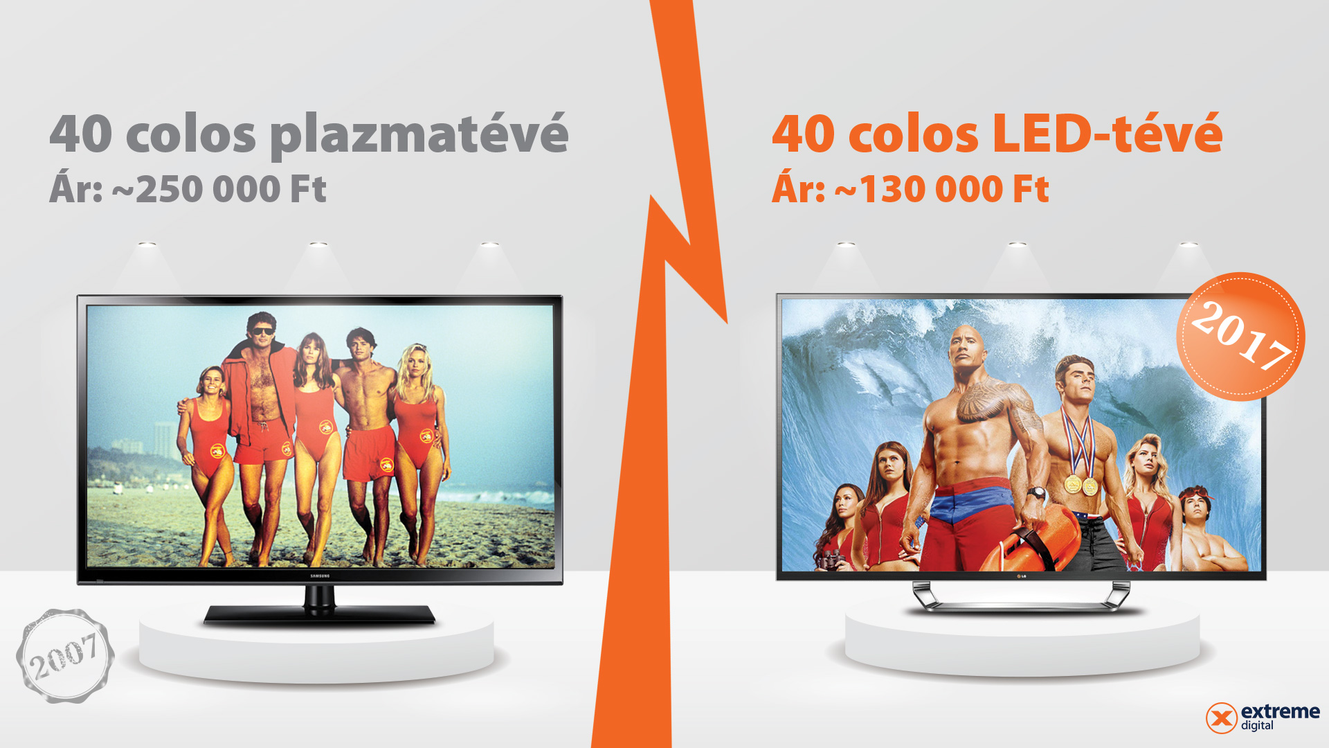 Tíz évvel ezelőtt még legalább 250 ezer forintba került egy negyvencolos lapostévé, ennyiért ráadásul még csak HD Ready típus volt elérhető. Manapság hasonló képméretű lapostévé már 100 ezer forint körüli összegért is elérhető, kétszer nagyobb felbontást kínáló Full-HD-s képernyővel, 20-25 ezer forinttal drágábban pedig ma már Ultra-HD-s készüléket is haza lehet vinni, ami nyolcszor nagyobb részletességet és okosfunkciókat is kínál.