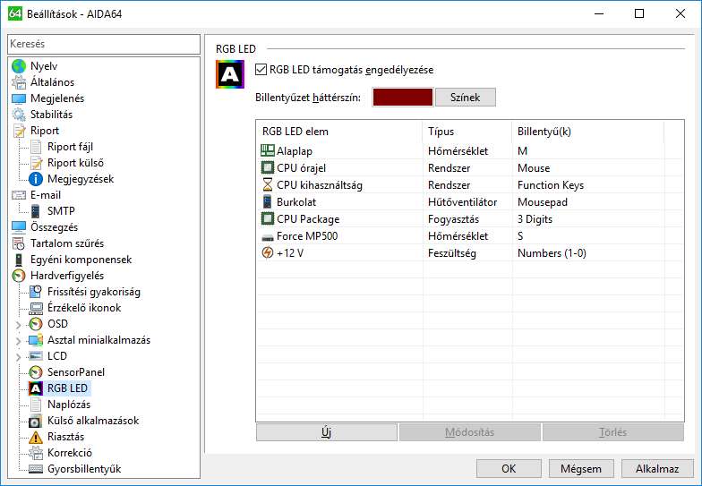 Az AIDA64 RGB LED modul bővült az Asus ROG RGB LED billentyűzetekkel és egerekkel, az Asus Aura API használatával. CPU és memóriakihasználtság, hálózati forgalom, hőmérséklet, feszültség, ventilátor sebesség, és áramhúzó mérések már figyelhetőek az RGB eszközökön, különböző vizuális ábrázolásokat használva.