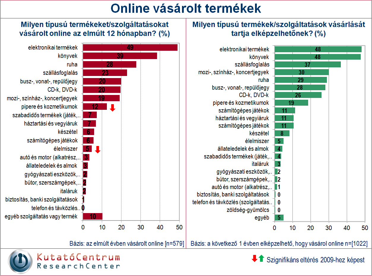 Az egész világon készített felmérés szerint az emberek legtöbbet, könyvet, DVD-t, ruházati cikkeket és játékokat vásárolnak az interneten. Mi magyarok inkább elektronikus cikkeket rendelünk a világhálóról. Azonban a gazdasági világválság hatására nem nőtt az online vásárlási kedv, hasonlóan a tavalyi adatokhoz, az internethasználók fele legalább egyszer rendelt a webről.