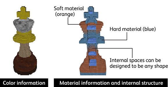 A fejlesztők, a tér mindhárom tengelye mentén kiterjedéssel bíró pontegységek, a volumetrikus pixelek (voxel) használatával képesek lettek arra, hogy minden eddiginél részletesebb 3D-s nyomatokat produkáljanak. Ez főleg annak köszönhető, hogy a voxelekhez egyesével lehet hozzárendelni a színekkel, vagy éppen az anyagösszetétellel kapcsolatos információkat, így a világon először sikerült létrehozni olyan 3D-s adatformátumot, amely nem csupán a formákkal, külső megjelenéssel összefüggő információkat dolgozza fel, hanem a belső szerkezetre, színekre, anyagokra és más fontos összetevőkre vonatkozóakat is.