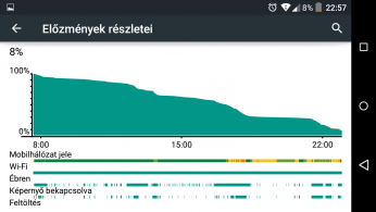 Az akku is kényelmesen kibírja a teljes napot. Reggel fél 9 körül szedtem le a töltőről, de még így éjjel fél 12-kor is 29%-nyi kraft van benne.
