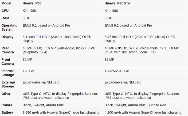 A legnagyobb gyártók trendjét látva, a Huawei idén is 3 modellt mutat be. A két erősebb, P30 és P30 Pro modell hasonló tulajdonságokkal rendelkezik és a lényegi eltérés csak a kijelző méretében valamint a tárhelyben mutatkozik meg. A kisebbik modellnek szánt Huawei P30 Lite készülék gyengébb processzorral és csak 2 lencsés kamera felépítéssel érkezik, azonban lényegesen olcsóbb lesz nagyobb modelleknél.