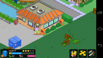 Springfield újraépítésének kezdetén eléggé meg van kötve a kezünk és a tutorial helyenként már az erősen fájdalmas kategóriát súrolja: fixen megszabja, hogy hova mit tehetünk, de egyszerűen nem hagy levegőhöz jutni. Nagyjából öt perc alatt át lehet szaladni az egészen, de idegesítőbb volt, mint a várakozás arra, hogy valami elkészüljön. Persze miután túlvagyunk rajta áthelyezhetjük a letett épületeket kedvünk szerint, de engem személy szerint zavart, hogy ezt nem lehetett már az elején megtenni. Viszont a párbeszédeket érdemes elolvasni, teljesen hozzák a Simpsonsban megszokott dolgokat (sajnos a karakterek nem szólalnak meg ilyenkor).
