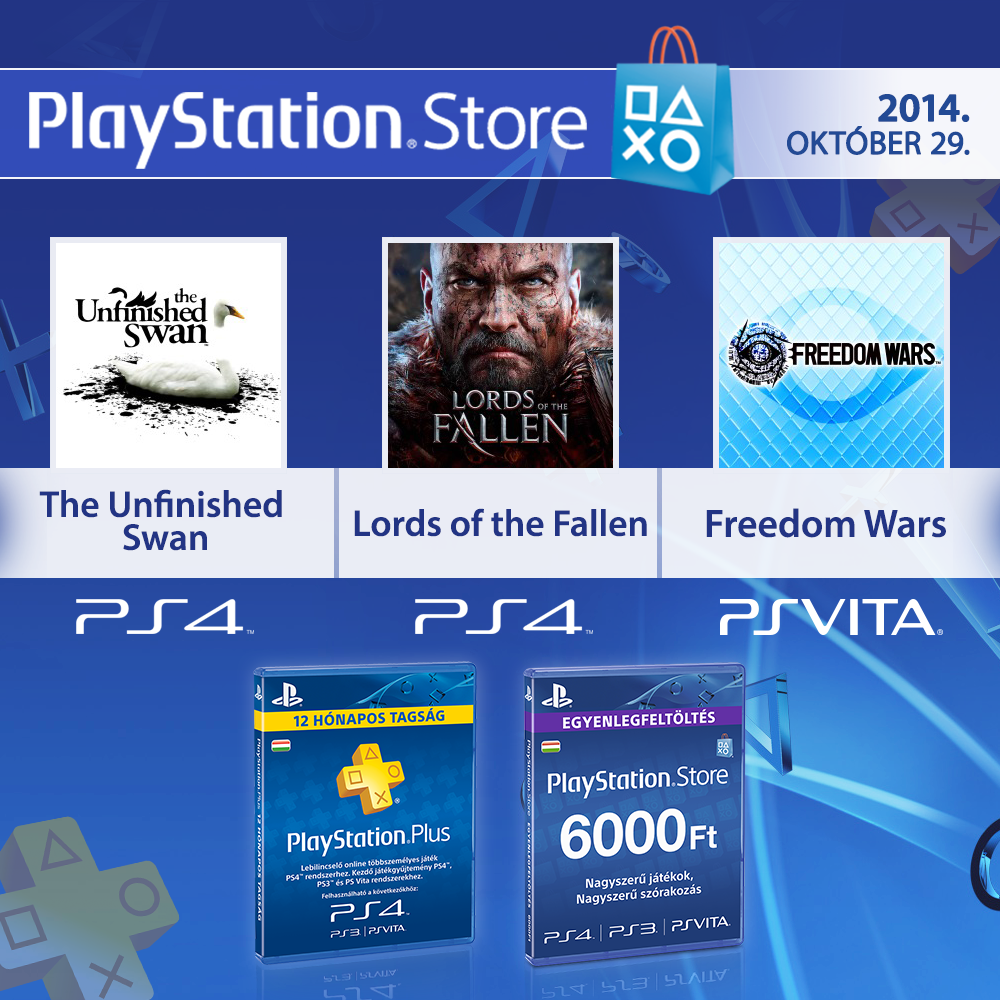 Ezen a héten olyan játékokkal bővült a PlayStation Store, mint a Lords of the Fallen, valamint a Freedom Wars. Az The Unfinished Swan PS4 és PS Vita verziója szintén elérhetővé vált, a Cross-Buy támogatásnak köszönhetően pedig mindkét platformra ingyen tölthetik le azok, akik már rendelkeznek a PlayStation 3-as változattal.