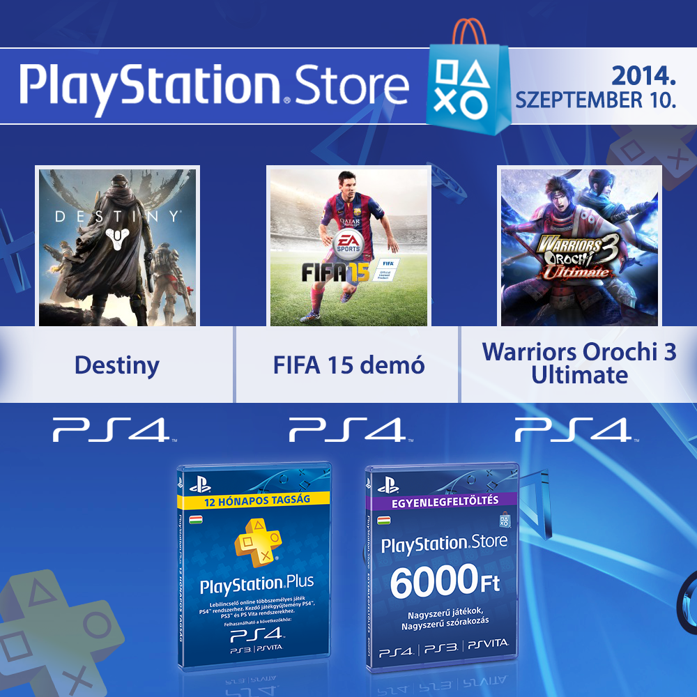 A PS4 és PS3 tulajokat kedd óta már várja a Bungie új játéka, a Destiny, valamint a FIFA 15 ingyenes próbaverzióját is letölthetik a PlayStation Store-ból. Az új címek mellett számos kiegészítés is érkezett az áruházba, köztük a Killzone Shadow Fallhoz és a Sniper Elite 3-hoz.