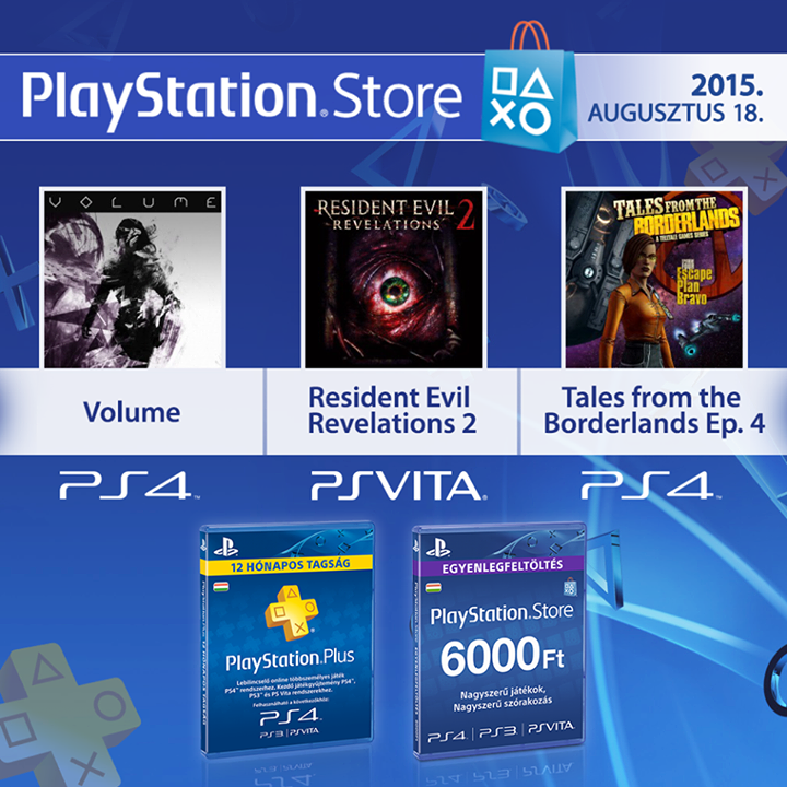 A PlayStation Store áruházba ezen a héten megérkezett a PS4-es, több mint 100 pályát tartalmazó lopakodós játék, a Volume, a Resident Evil Revelations 2 PS Vita verziója, végül de nem utolsó sorban pedig a Tales from the Borderlands negyedik epizódja is.