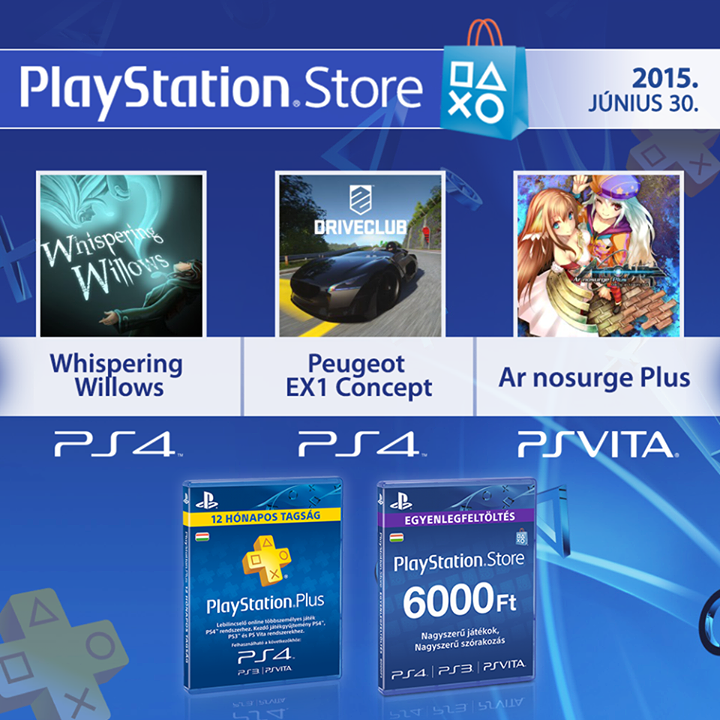 A PlayStation Store e heti frissítésével elérhető vált a Whispering Willows (PS4, PS Vita), a japán szerepjátékok kedvelőit pedig várja PS Vitán az Ar nosurge Plus: Ode to an Unborn Star. Új kiegészítések is érkeztek: többek között a DRIVECLUB-hoz már letölthető ingyen a Peugeot EX1 Concept autó, emellett pedig az Evolve-hoz, a Minecrafthoz és a Warframe-hez is jöttek friss tartalmak.