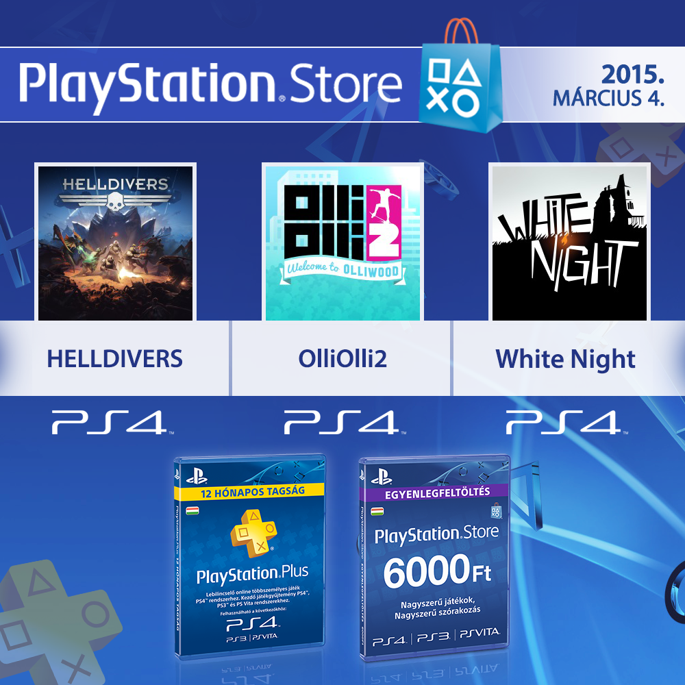 A PlayStation Plus tagoknak többek között már extra költségek nélkül letölthető az Oddworld: New ‘n’ Tasty, a Valiant Hearts és az OlliOlli 2: Welcome to Olliwood, amely ezen a héten jelent meg PS4-re és PS Vitára. A PlayStation Store e heti újdonságai között továbbá megtalálható a HELLDIVERS, a White Night, valamint a Resident Evil Revelations 2 második epizódja is.