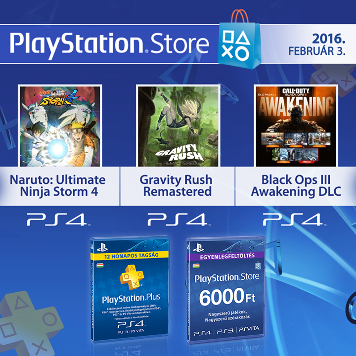 A PlayStation Store áruházba ezen a héten megérkezett a Gravity Rush Remastered, így már PS4-en is átélheted Kat izgalmas kalandjait. A Call of Duty: Black Ops III játékosokat várja az Awakening DLC, amely négy új multiplayer pályával, valamint egy Zombies helyszínnel bővíti a játékot. Emellett a Naruto-rajongóknak hamarosan, február 5-én elérhetővé válik a NARUTO SHIPPUDEN: Ultimate Ninja STORM 4, normál és Deluxe Edition változatban is.