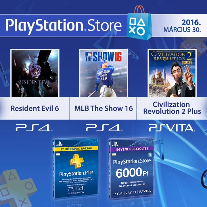 Március utolsó frissítésével megérkezett a Resident Evil 6 PS4 verziója, amely felújított látvánnyal várja a sorozat kedvelőit. Emellett olyan újdonságok is elérhetővé váltak az áruházban, mint az MLB The Show 16, a Sid Meier's Civilization Revolution 2 Plus, hamarosan pedig a Minecraft: Story Mode ötödik epizódja is megjelenik.