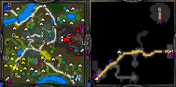Mint látható a B jelölés alatt egy Stronghold város áll egyenesen délre. Talán azt gondolnánk, ha sikerül behódoltatni a várost, akkor esetlegesen a heti rendszerességű ork inváziónak is véget vethetnénk. Pedig micsoda tévedés! Az ork hősök egyáltalán nem ebből a városból érkeznek. A script generálja őket folyamatosan a város bejárata elé közvetlenül, nem számít, hogy az éppen kinek a kezén van.