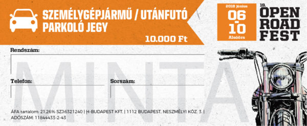 A területen tartózkodó személygépjárművek és utánfutók számára kötelező a parkolójegy vásárlása, amely egységesen 10.000 Ft a rendezvény idejére (külön megvásárolandó személygépjárművek és utánfutók számára, azaz aki mind a személygépjárművét, mind pedig az utánfutóját a kemping területen szeretné tárolni, 2 db jegyet kell vásárolnia). Napi parkolójegyeket területi korlátozások miatt nem áll módunkban kiadni. A parkolás kizárólag a szervezők által kijelölt területen lehetséges, érkezési sorrendben. Előzetes területfoglalásra nincs lehetőség! A tiltott területen parkoló vagy parkolójegy nélküli járműveket, – amennyiben a tulajdonos a második felszólításra sem parkolja át a járművét – a szervezők elszállíttatják! ÉRVÉNYES: 2018. június 6. 12:00 – 2018. június 10. 09:00