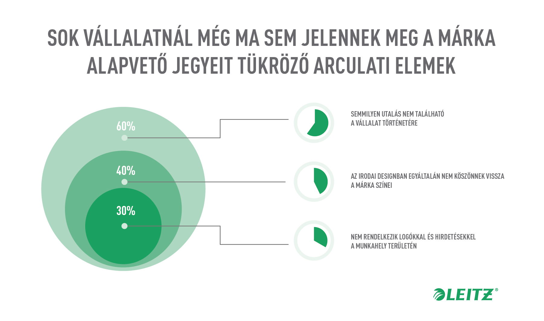 Ha a munkavállalók minden nap csak „bejárnak” az irodába, és mechanikusan elvégzik a feladataikat, akkor óriási lehetőséget hagy ki a munkáltatójuk. Ha ugyanis egy cégvezető odafigyel arra, hogy a kollégák jól érezzék magukat az irodában, és élvezzék is azt, amivel napi 8 órában foglalkoznak, akkor cégük felé is nő a kötődésük, és hatékonyabban tudnak dolgozni. Ha pedig emellett még arra is gondot fordít, hogy az alkalmazottak azonosulni tudjanak a cég alapvető márkaértékeivel, akkor már nyert ügye van. A Leitz legújabb tanulmánya szerint bár sok vállalat szeretné úgy kialakítani irodáját, hogy az minél inkább közvetítse saját identitását, ennek ellenére a cégek 40%-ánál például az irodában még a márka színei sem köszönnek vissza.