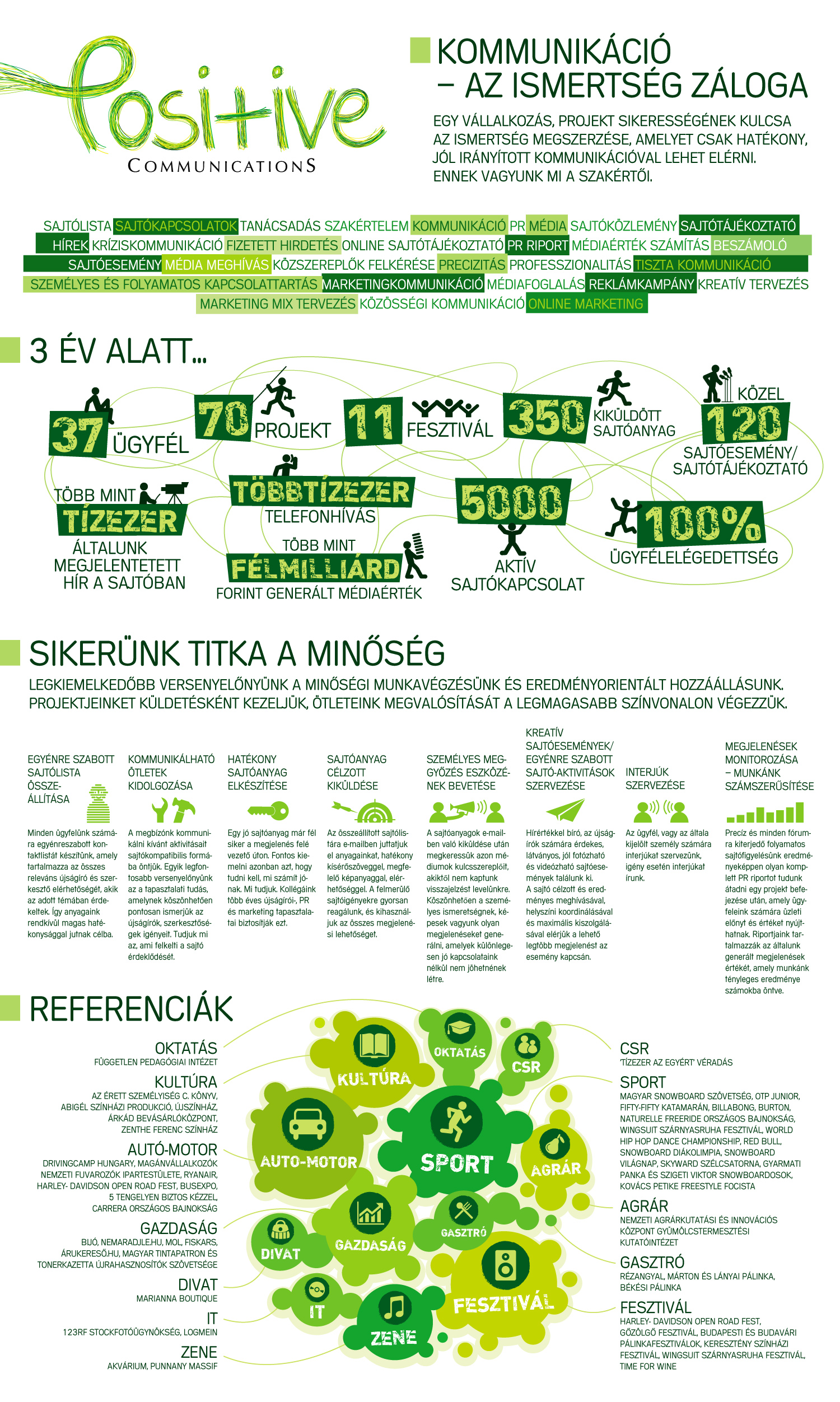 Fennállásának harmadik évfordulóját ünnepli a Positive Communications. A cég 3 év leforgása alatt 37 ügyfél 70 projektjén dolgozott, több mint félmilliárd médiaértéket generálva. Ez idő alatt sok tízezer sajtómegjelenés látott napvilágot közel 350 közleményük nyomán.