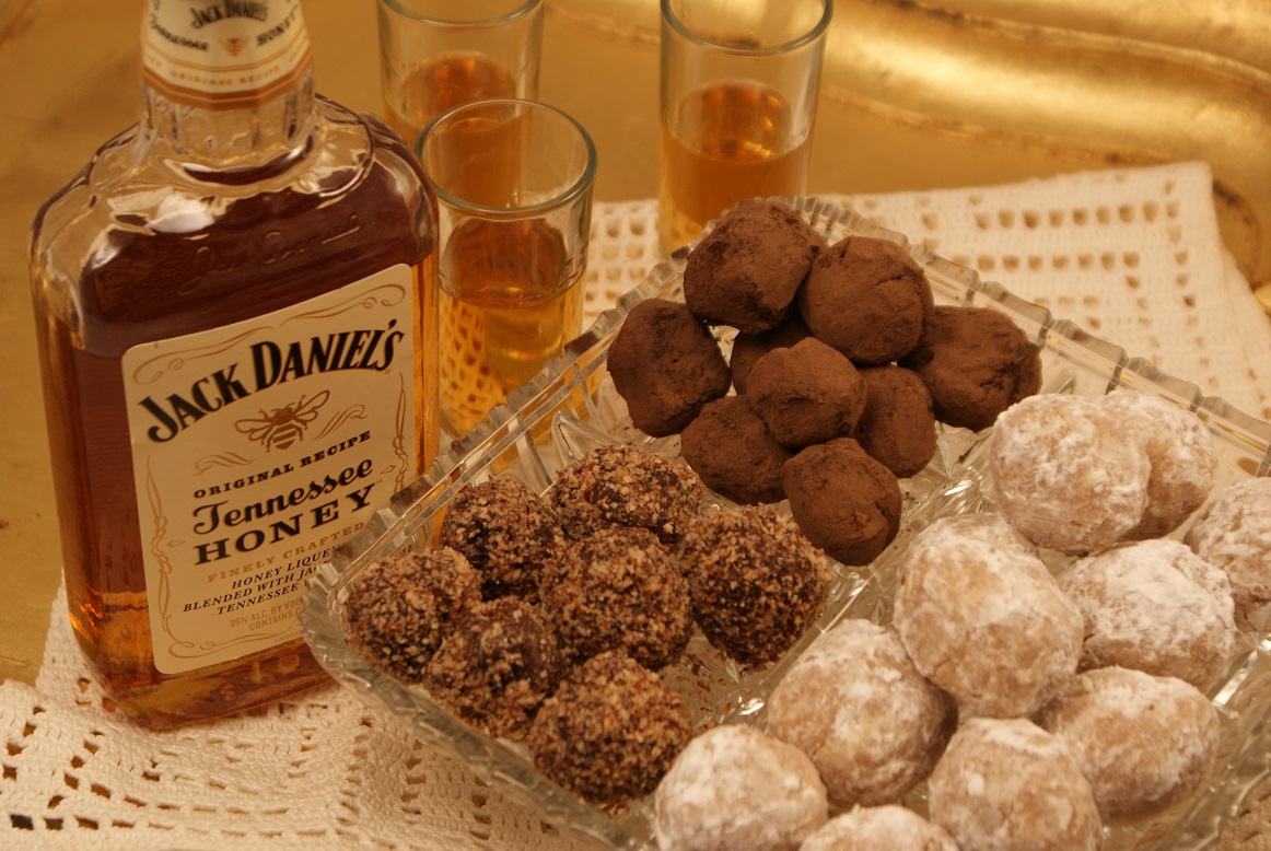 Közepes lángon hevítsük fel a habtejszínt, majd adjuk hozzá az összetördelt csokoládét. Keverjük mindaddig, míg teljesen felolvadnak. Öntsük bele a whiskey-t, és folyamatos kevergetés mellett várjunk, míg teljesen besűrűsödik. Ha úgy érezzük kész, vegyük le a tűzről és várjuk meg míg kihűl. Amikor már nem túl forró a kezünknek – de könnyen alakítható – formázzunk belőle golyókat és forgassuk meg őket kakaóporban, majd pekándióban. Egy légmentesen zárható edényben tegyük be a hűtőbe, és csak tálalás előtt 30 perccel vegyük elő.