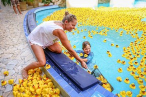 Fürdőruhában versenyeztek egymással hazánk csinos hírességei - Ada, Som-Balogh Edina és Vajna Tímea már elkezdték a „felkészülést” az augusztus 30-i Kacsafutamra. A sztárok medencébe ugrottak a sárga gumikacsákkal az Aquaworldben, ahol egy napra a kacsák vették át az irányítást.