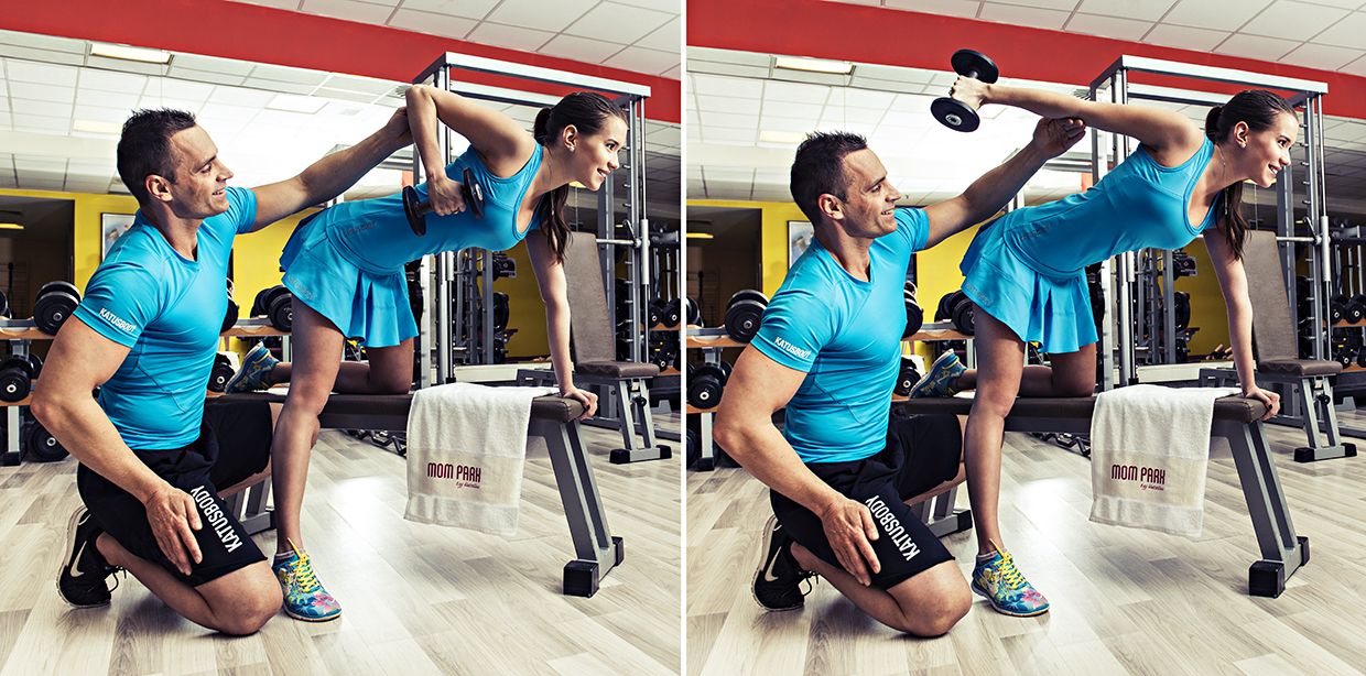 Ez a gyakorlat a háromfejű karizom, vagy közismertebb nevén a tricepsz edzésének egyik legjobb módja. A bal lábaddal térdelj fel egy padra, a bal kezeddel pedig támaszkodj meg a pad végén. Figyelj arra, hogy a térded a csípőd, a kartámaszod pedig a vállad alatt legyen. Vegyél a jobb kezedbe egy súlyzót, emeld fel a karod hajlítva, úgy, hogy a tenyered befelé néz. A könyököd a gyakorlat végrehajtása folyamán mindvégig próbáld rögzítve tartani. Végezz karnyújtást majd karhajlítást. Végezd el a gyakorlatot mindkét karoddal. Itt is figyelj arra, hogy ne lendületből oldd meg a feladatot, hanem az izmaidat dolgoztasd.