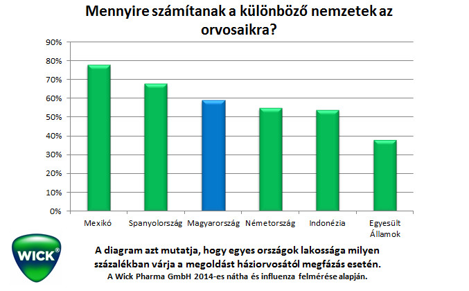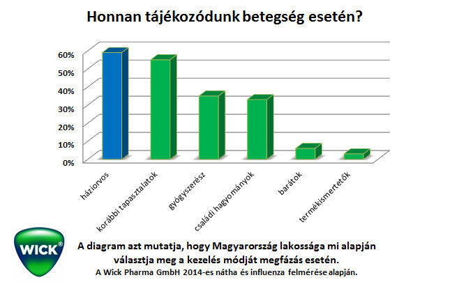 A magyar válaszadók legnagyobb része – összesen 59 százalék – követi a háziorvosa utasításait, de az is kiderült, hogy a szakemberek tanácsai után leginkább saját tapasztalatainkra hagyatkozunk. Gyógyszerészeinkben is megbízunk: a megkérdezettek 35 százaléka jelölte meg, hogy a patikában kér segítséget betegség esetén, derült ki a Wick Pharma GmbH 2014-ben készített átfogó kutatásából. Negyedik helyen a nagymamák végeztek, a hazai válaszadók 33 százaléka ugyanis családi praktikákat veti be egy-egy megfázás esetén.