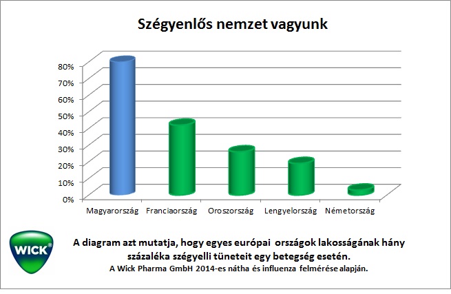 Kevés bosszantóbb dolog van annál, mint amikor az első találkozón folyton tüsszentéssel szakítjuk félbe partnerünket, vagy egy prezentációt a mi köhögésünk miatt kénytelenek szüneteltetni. A tünetek megjelenésekor a legtöbben kifejezetten zavarba jövünk, és ezt nonverbális jelekkel is kifejezzük: elfordulunk, lehajtjuk a fejünket és igyekszünk lehetőségeinkhez mérten kikerülni a többiek látóteréből. A Wick Pharma GmbH 12 ország közreműködésével készített kutatásból is ez látszik: a magyar megkérdezettek 80%-a nyilatkozta, hogy szégyelli megfázással járó tüneteit. Ez az adat a többi országgal összehasonlítva esetünkben a legmagasabb, minket követnek a franciák 42,3%-kal, a németeknél pedig csupán 2,9% ez a szám.