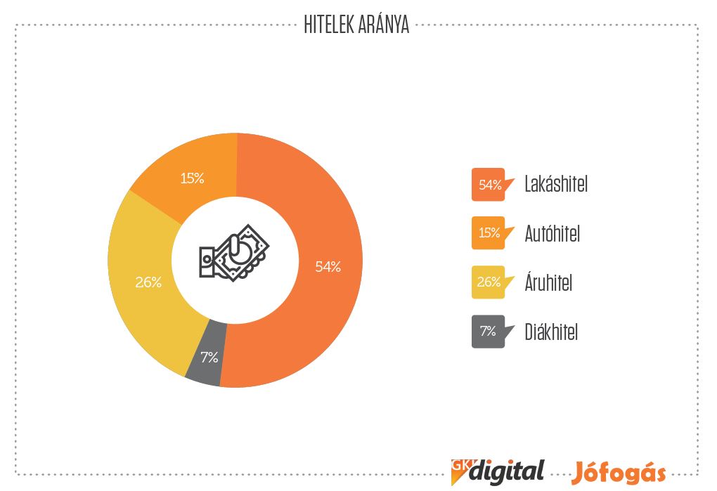 A magyar lakosság 45%-a törleszti hitelét, és noha tisztában vagyunk a takarékoskodás fontosságával, ezt éppen az adósságrendezés miatt nem tudjuk megtenni. A Jófogás és a GKI közös kutatása 10 000 ember megkérdezésével vizsgálta a hazai társadalom aktuális pénzügyi helyzetét. Kiderült, a banki szolgáltatásokat nem ismerjük eléggé, és a pénzügyi tudatosság is hiányzik a lakosságból. Minden második adós a lakáskölcsönét törleszti, az áruhitel pedig számottevőbb, mint a gépjármű lízing.