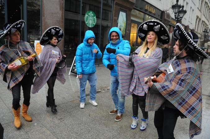 Lola, Dukai Regina, Bozont és Talán Attila Valentin nap alkalmából, dacolva hideggel és esővel, a belváros utcáin zenélve csaltak mosolyt az arra sétáló, mit sem sejtő emberek arcára. Mivel február a farsang hónapja is, így mindenre elszánt hírességeink poncsóban és sombreróban varázsoltak mexikói hangulatot a borús délelőttön, ezzel nem kis feltűnést keltve.