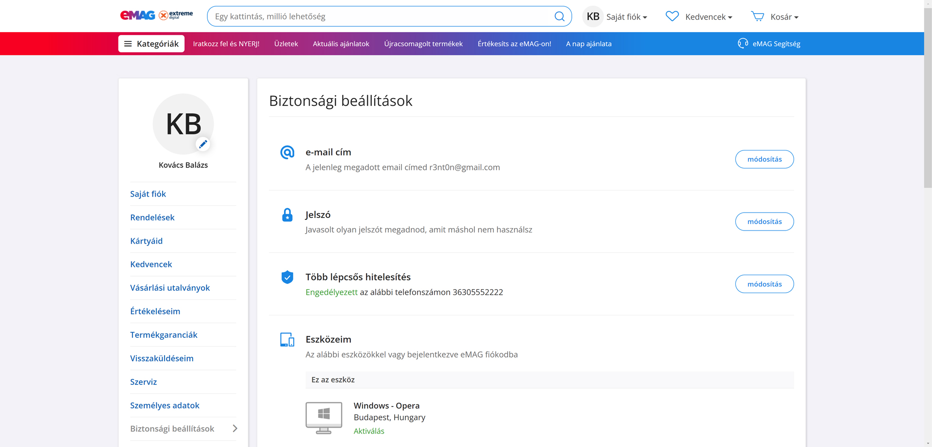 Egy olyan extra védelmi vonal, amely az eMAG.hu-n regisztrált felhasználói fiókokat védi a belépéshez szükséges e-mail cím és jelszó párosának megadásán felül. A több lépcsős hitelesítést a www.emag.hu-n és a mobil appban egyaránt a felhasználói fiók ikonjára bökve, a weben a Biztonsági beállítások, az appban pedig A fiók beállításai menüpont alatt lehet aktiválni, ha a fiók használója itt elmenti a mobiltelefonszámát.